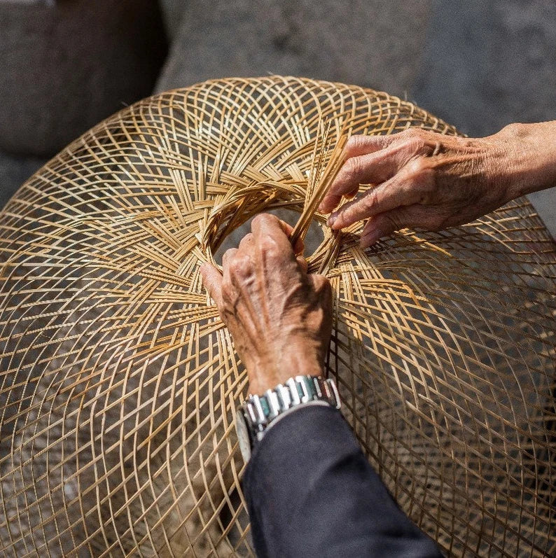 EIRA - Designer-Pendelleuchte mit handgeflochtenen Bambusplatten