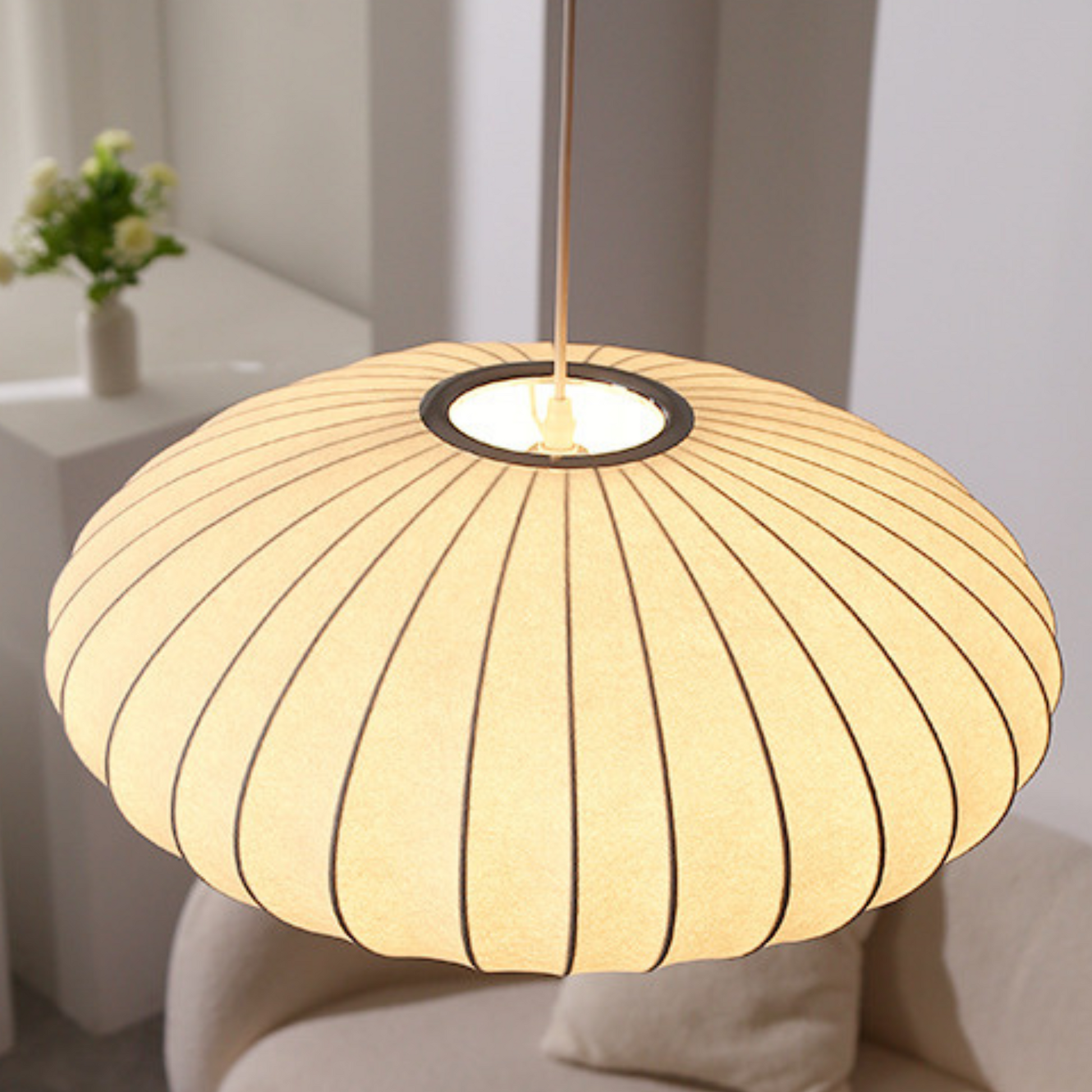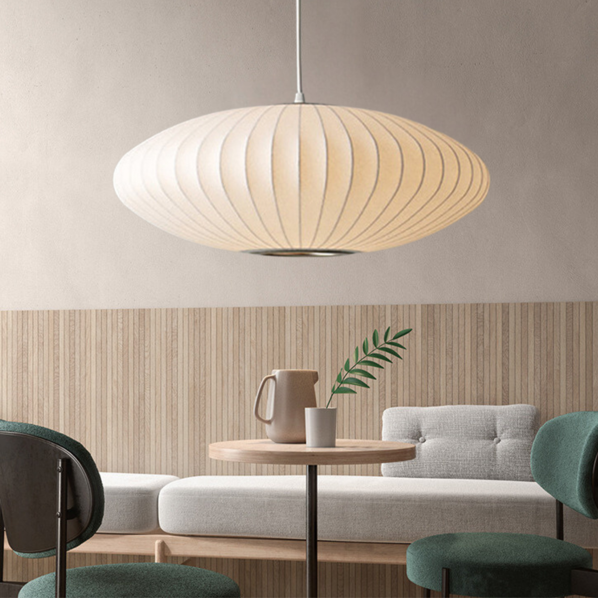 Die handgefertigte Pendelleuchte in Ellipsenform verleiht Ihrem Interieur eine edle und ruhige Ausstrahlung. Inspiriert vom Japandi-Stil kombiniert diese Lampe die minimalistische Eleganz des japanischen Designs mit der warmen Funktionalität skandinavischer Einflüsse. Gefertigt aus gesprühten, mehrschichtigen PVC-Lagen, besticht die Lampe durch ihre luxuriöse, seidige Optik und ihre sanfte, organische Form, die jedem Raum eine leichte und luftige Note verleiht.