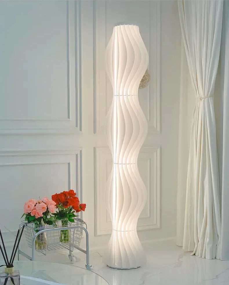 Bringen Sie Bewegung und Atmosphäre in Ihr Interieur mit der wellenförmigen organischen Stehlampe