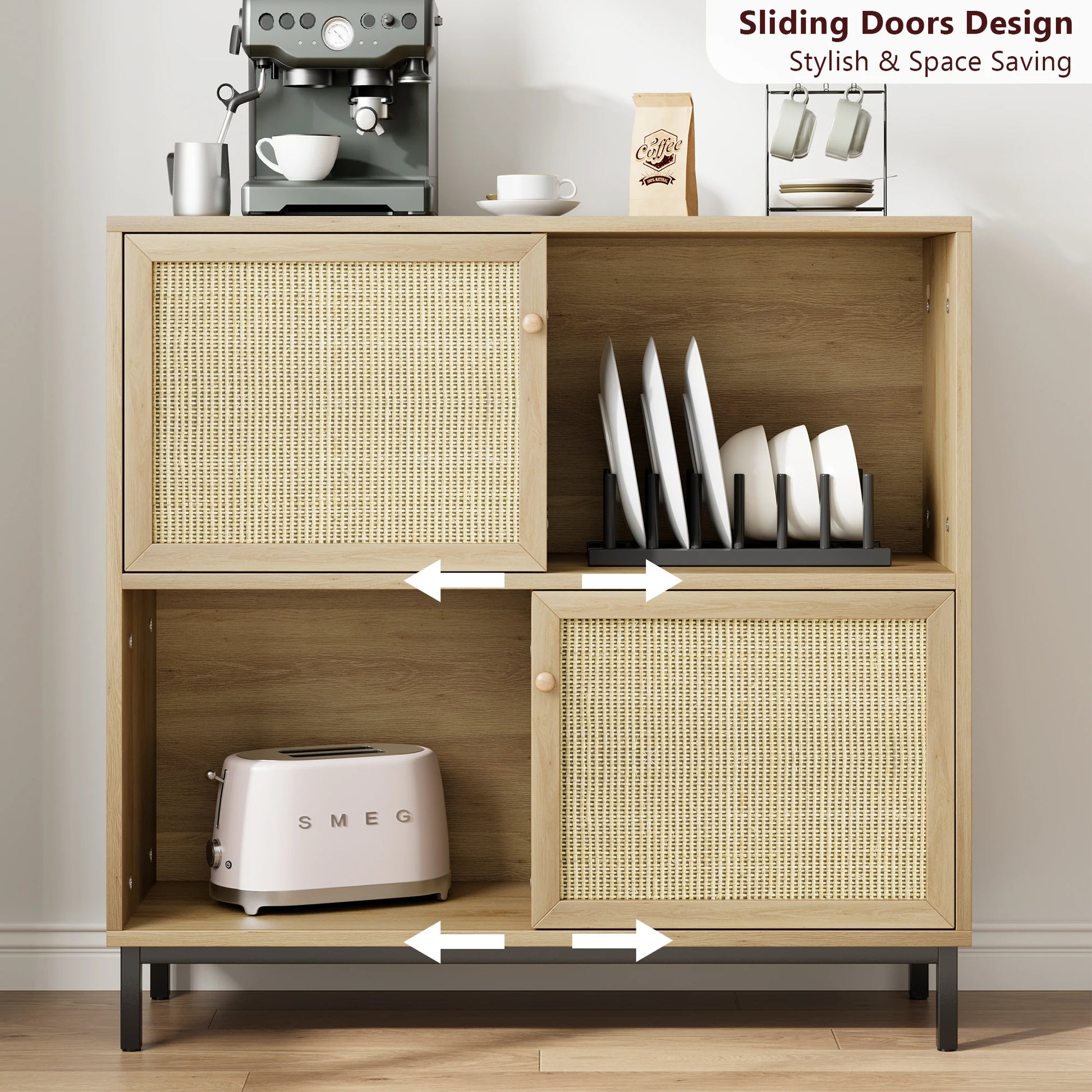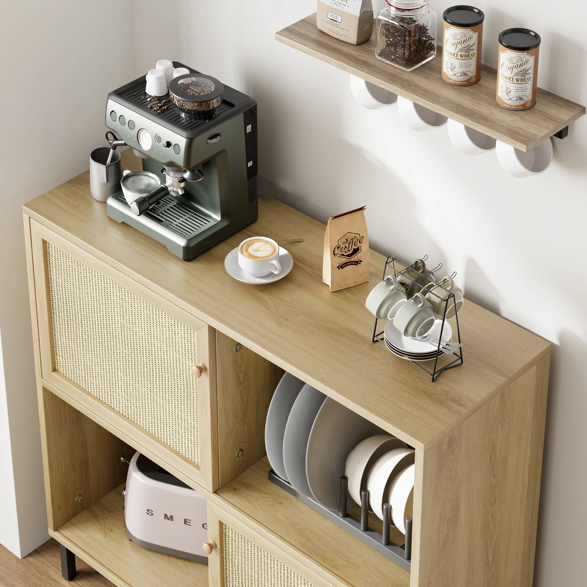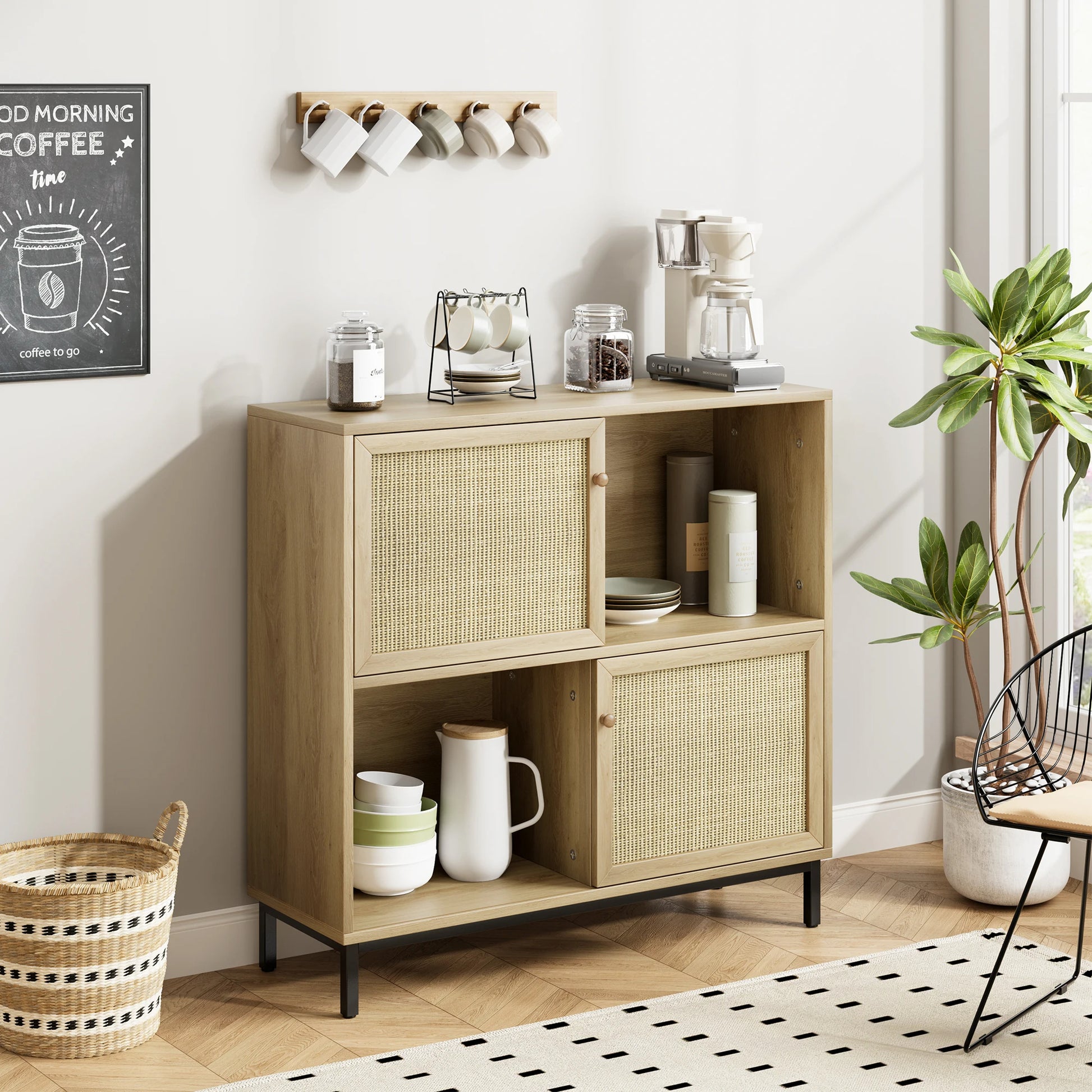 - Material: Natürliche Eiche mit Türpaneelen in Rattan-Optik