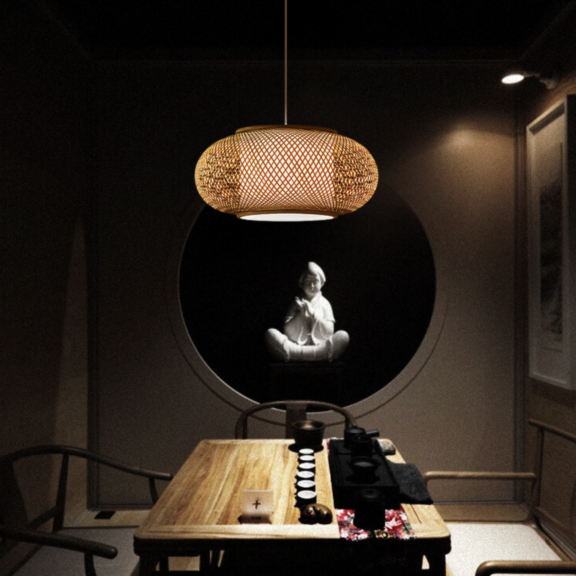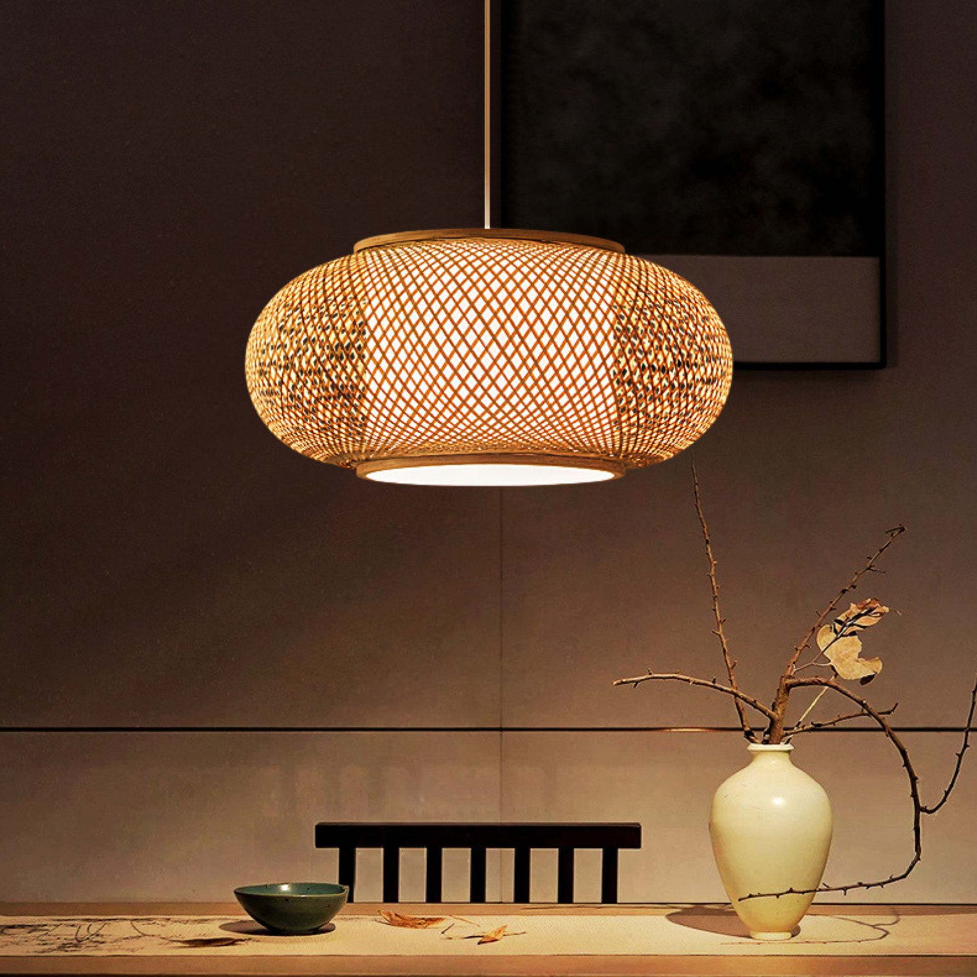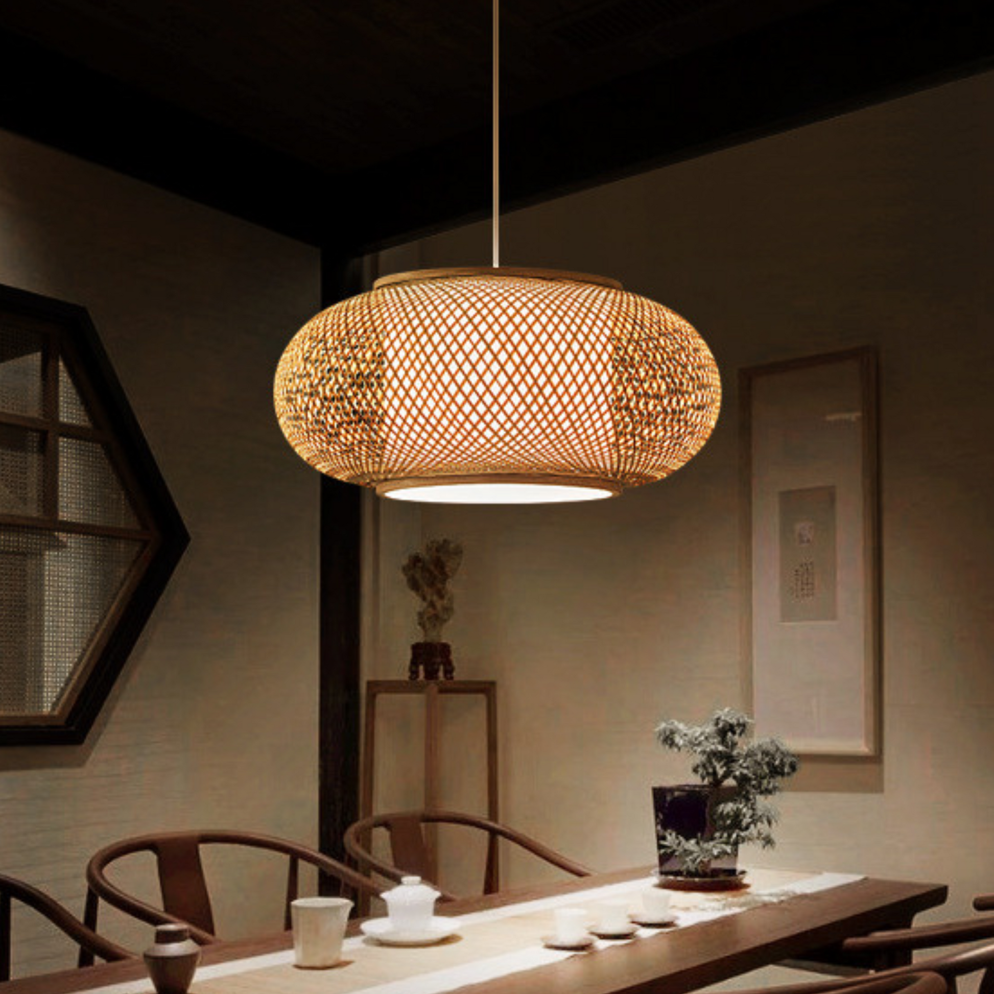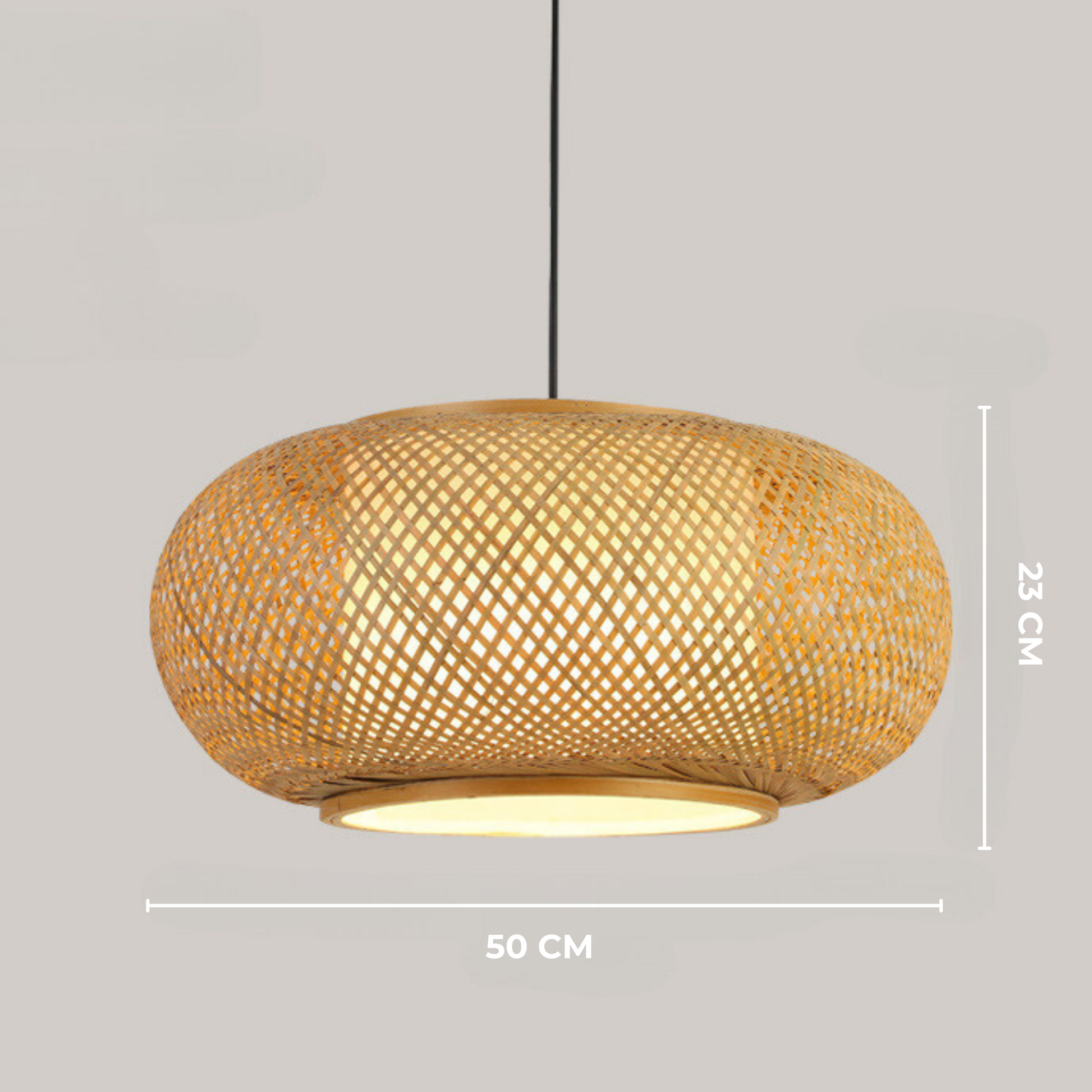 Vereine Handwerkskunst und Natur mit dieser handgeflochtenen Bambuslampe.