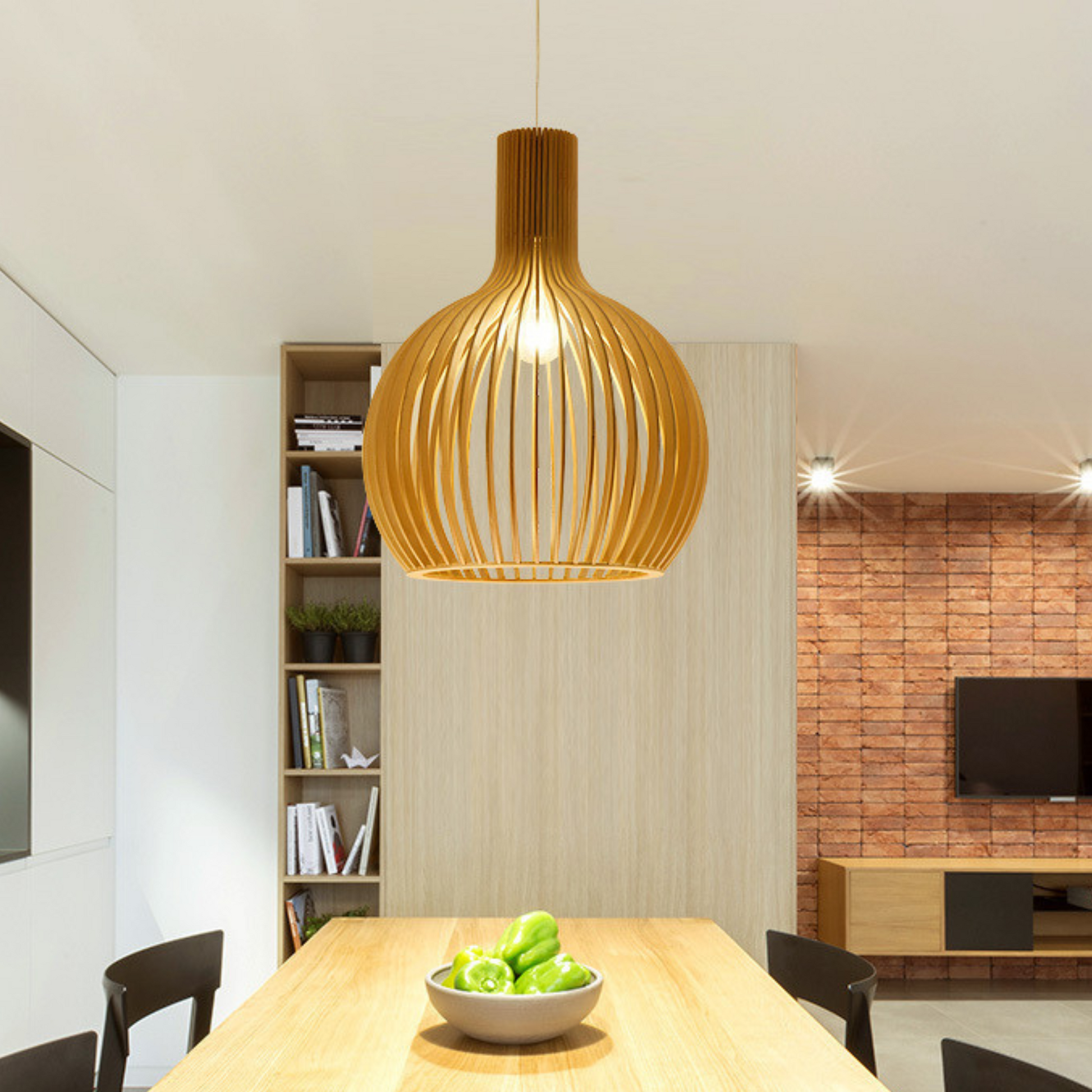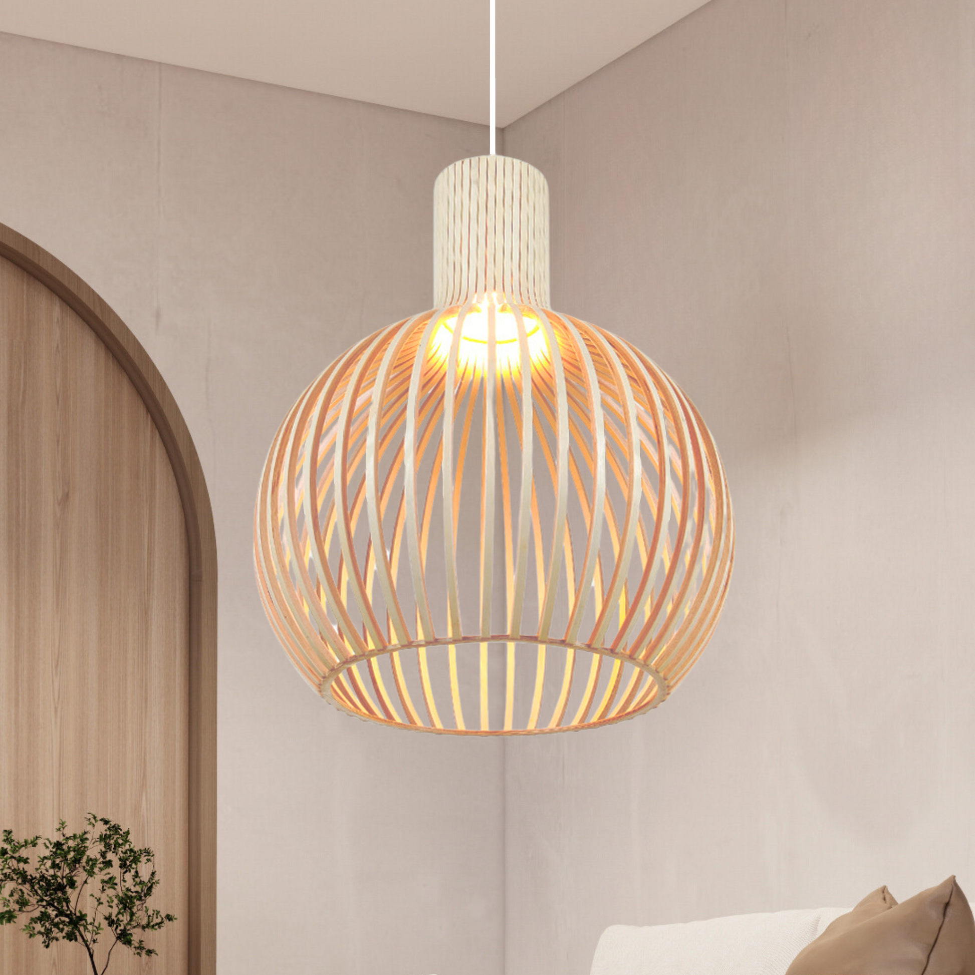- Einzigartiges Design: Der Holzlamellenschirm erzeugt ein stimmungsvolles Lichtspiel im Raum.