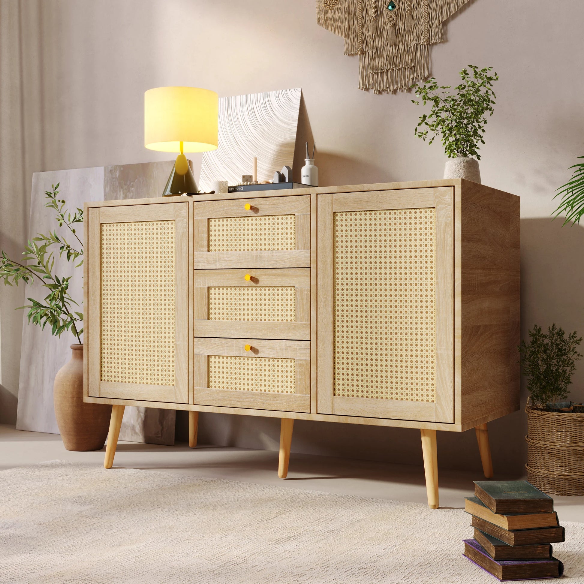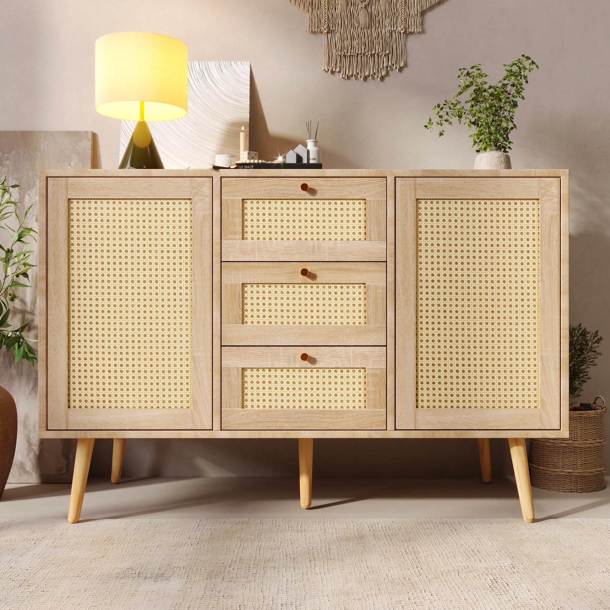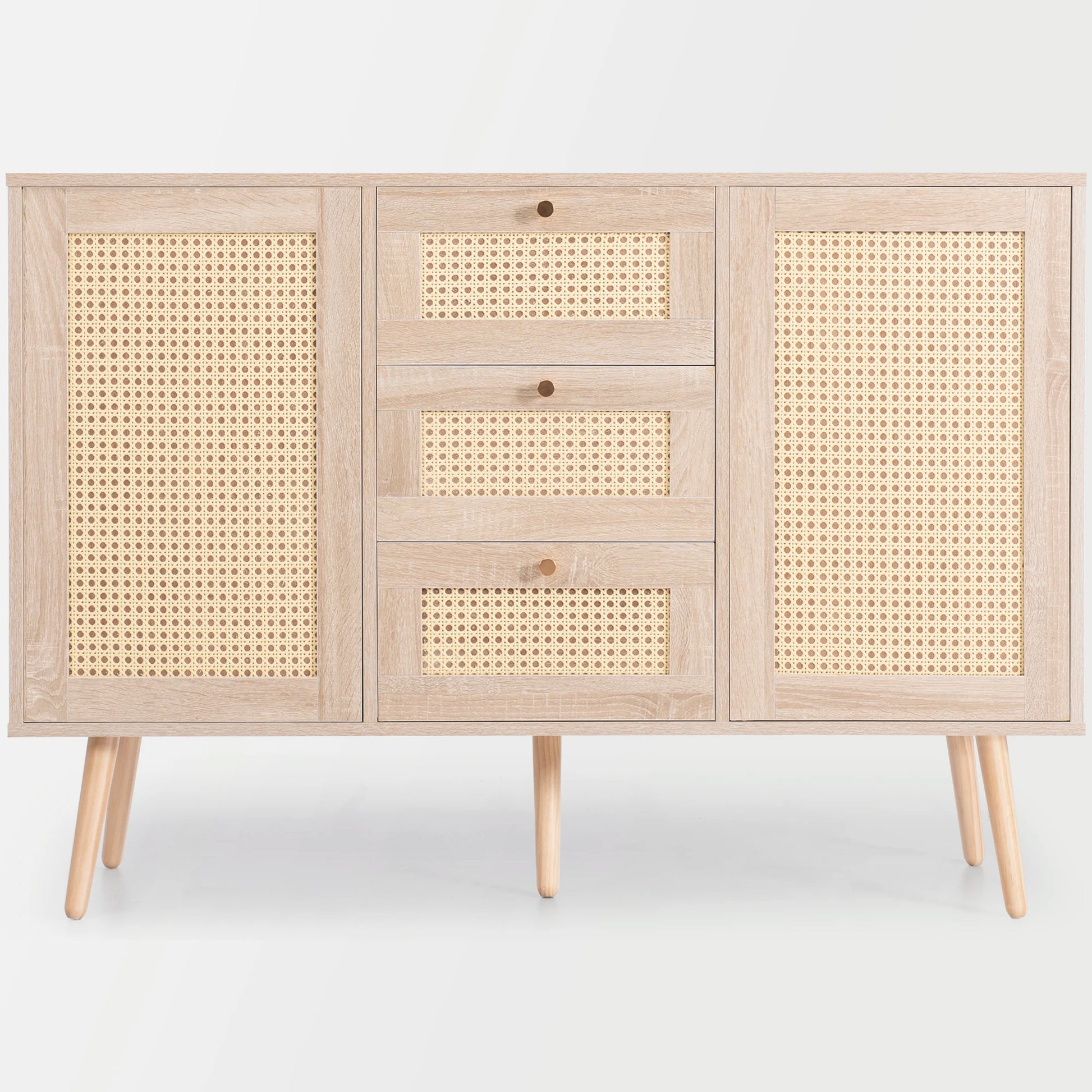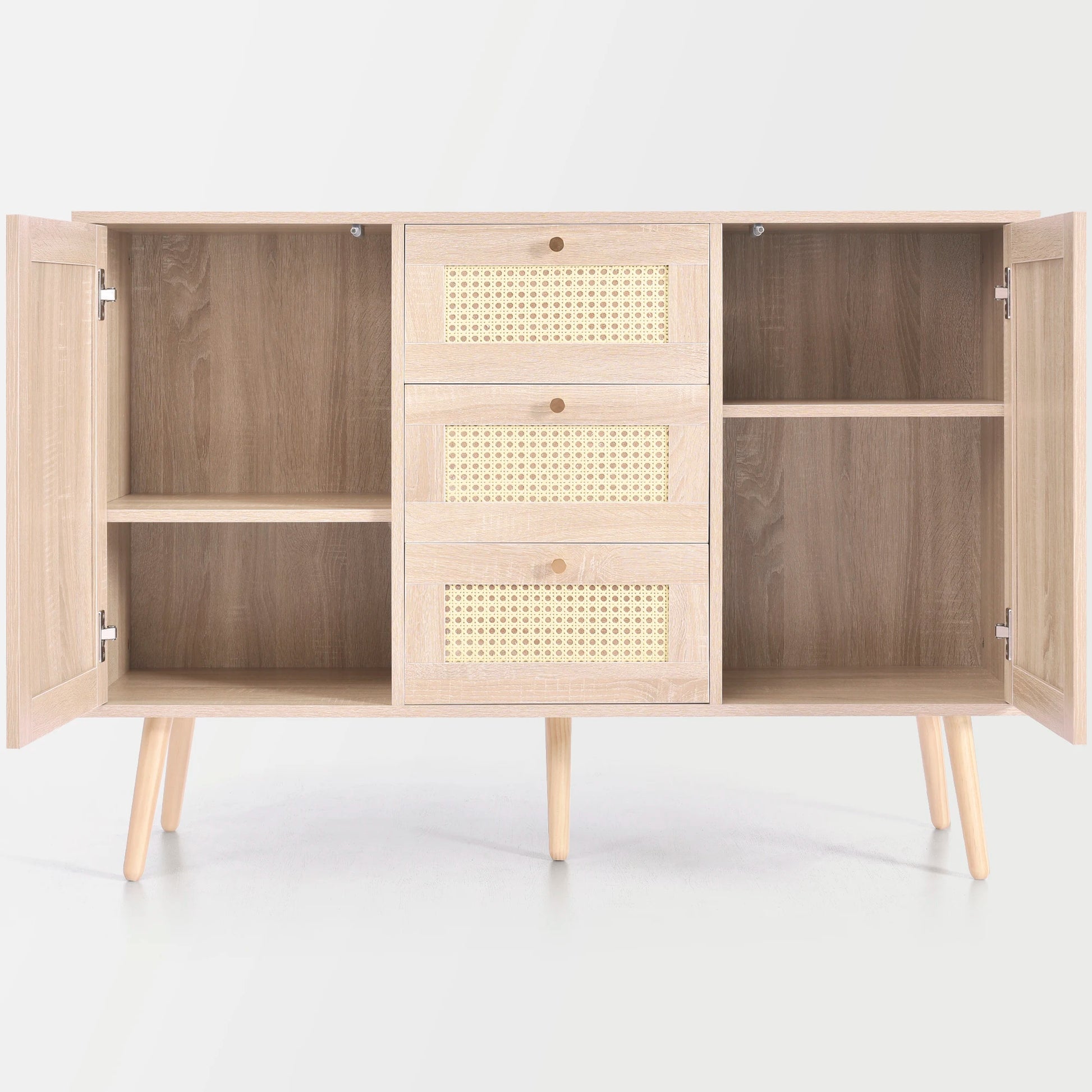 - Material: Natürliche Eiche mit Rattan-Tür- und Schubladenpaneelen