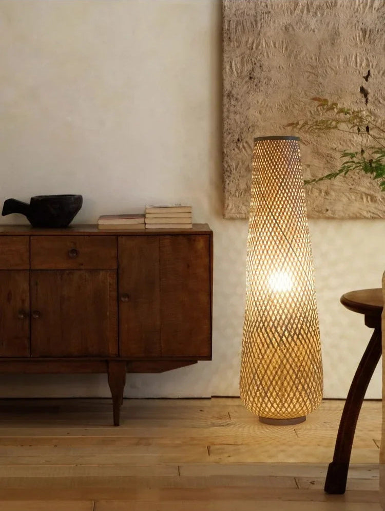 VARM - Handgefertigte Stehlampe aus gewebtem Bambus